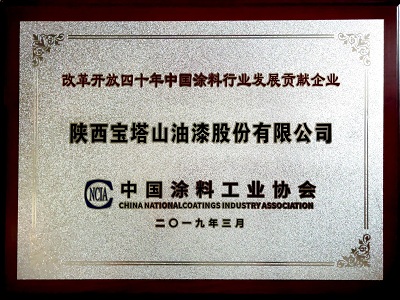2019年3月,寶塔山漆被中國(guó)涂料工業(yè)協(xié)會(huì)評(píng)為“改革開(kāi)放四十周年中國(guó)涂料行業(yè)發(fā)展貢獻(xiàn)企業(yè)”