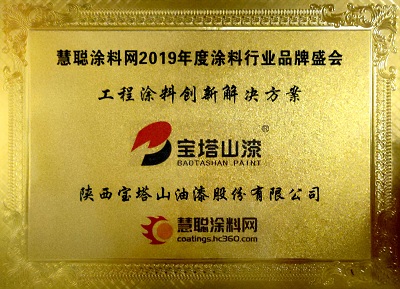 2019年寶塔山漆榮獲慧聰涂料網(wǎng)2019年度涂料行業(yè)品牌盛會(huì)“工程涂料創(chuàng)新解決方案獎(jiǎng)”