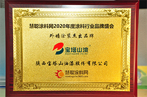2020年7月,寶塔山漆榮獲第十六屆2020年度涂料行業(yè)影響力品牌頒獎(jiǎng)盛典活動(dòng)中榮獲”外墻涂裝杰出品牌“
