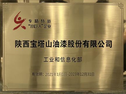 2021年,寶塔山漆入選專精特新”小巨人“企業(yè)名單。